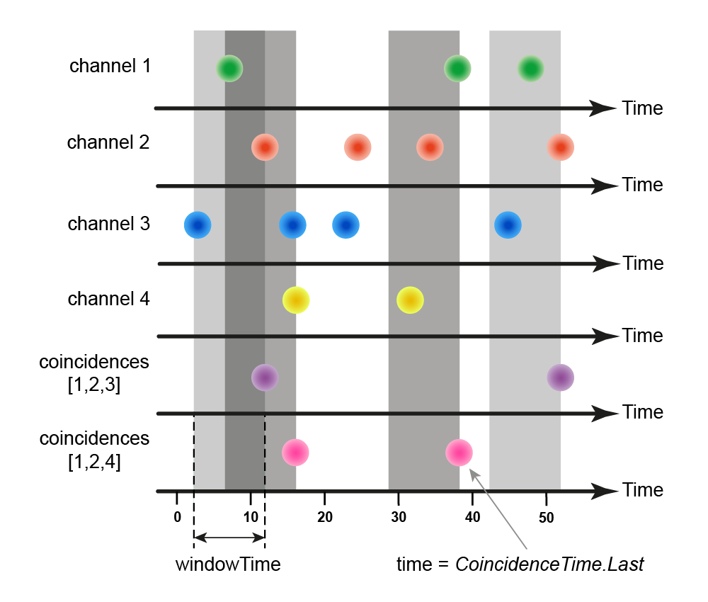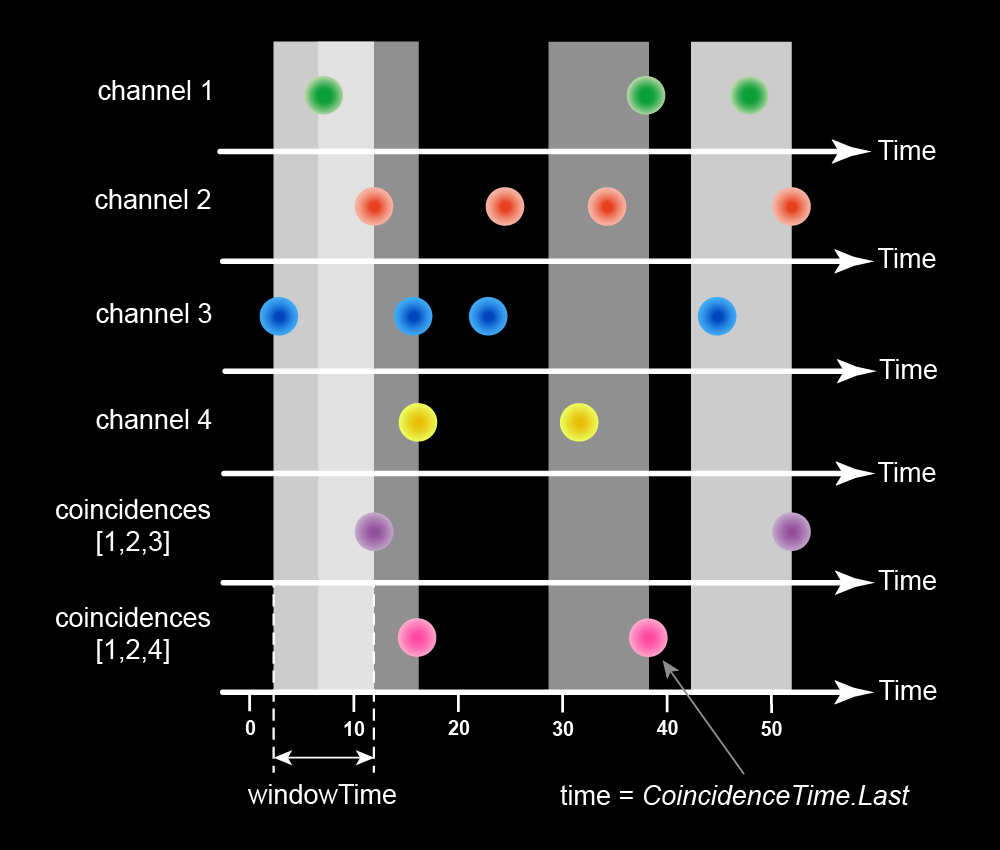 time (CoincidenceTime (default: CoincidenceTime.Last)) – timestamp mode